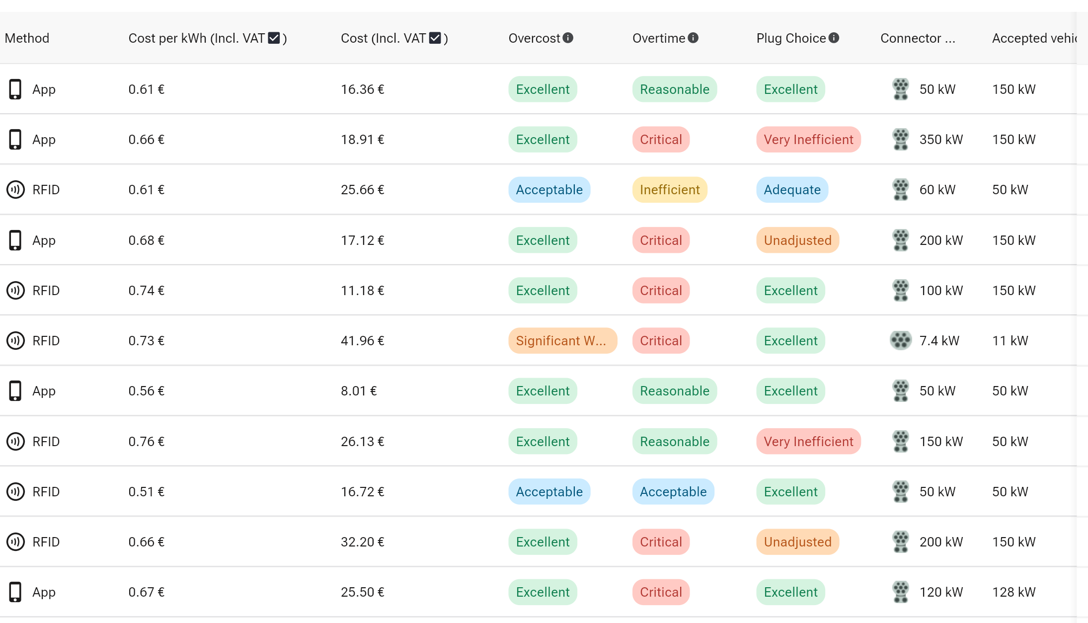 - Consultez le TOP 10 des points de charge les plus économiques à l’emplacement du conducteur.